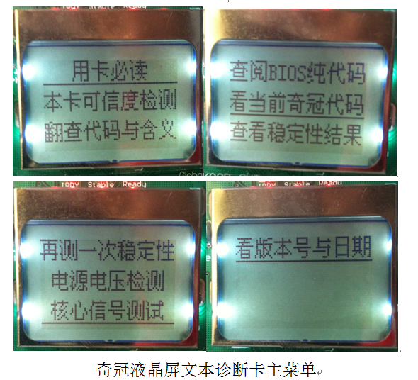 带有液晶屏外显示插口的两位诊断卡mp2c即将上市,当用户觉得查阅说明书麻烦时,可再买奇冠生产的液晶屏文本外显示部件直接连接到该卡的“液晶屏插口”既可以从液晶屏上直接看代码含义、操作指南、等等, 省去翻说明书的麻烦。