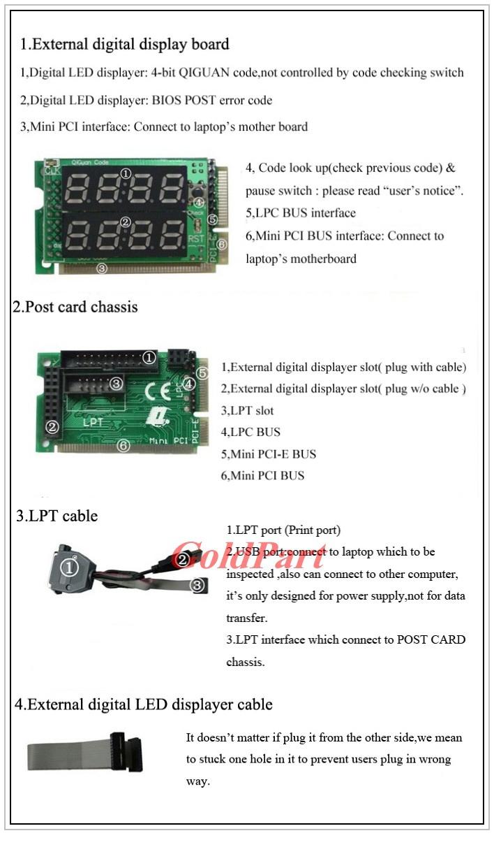 • 8-bit digital LED displayer,complete indication 4-bit QIGUAN code,display old BIOS POST code and previous code at same time,because BIOS POST code always displayer one by one continuously which help to detect if QIGUAN POST code itself is bad or fake code which caused by dirty PIN and slot,make sure users not confused.